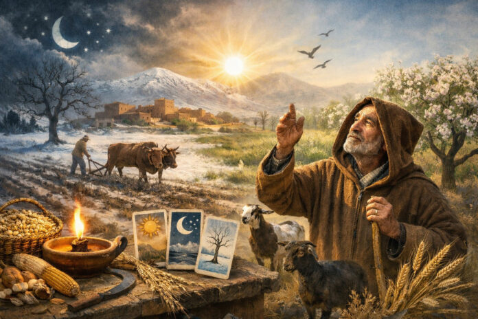 لقد امتلك الأجداد معرفة دقيقة بحركات الشمس والقمر والبروج والمنازل، ورصدوا انعكاساتها على الطقس والفلاحة، دون أدوات علمية حديثة. وهي معرفة تقوم على الملاحظة الطويلة والتجربة المتراكمة، وتنتقل عبر الأمثال الشعبية باعتبارها “أرشيفًا شفهيًا” للطبيعة (عبد الله حمودي، الشيخ والمريد، 1980؛ Paul Thompson, The Voice of the Past, 1978).